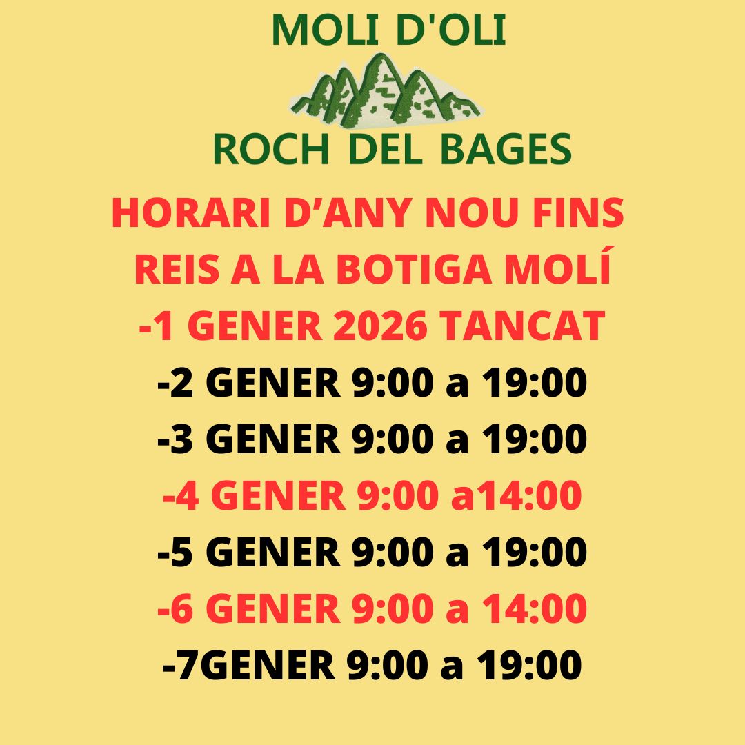 HORARI D'ANY NOU FINS REIS A LA BOTIGA DEL MOLÍ