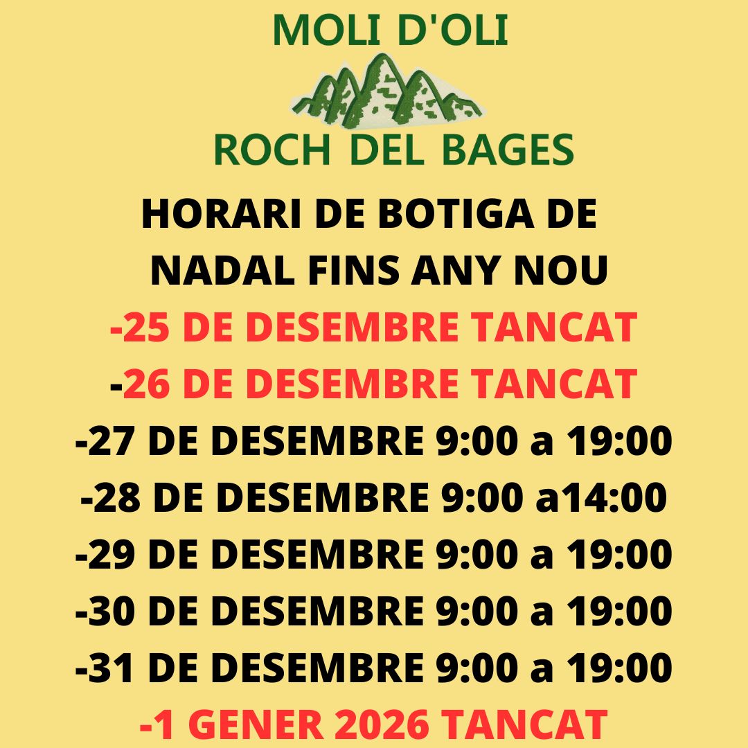 Carmen Vendrell Ollé | NIF.: 77.269.490-R | Aptdo. Correos 80 | 08272 | Sant Fruitos del Bages (Barcelona) | info@olidelbages.com | Tel.: 938 760 583